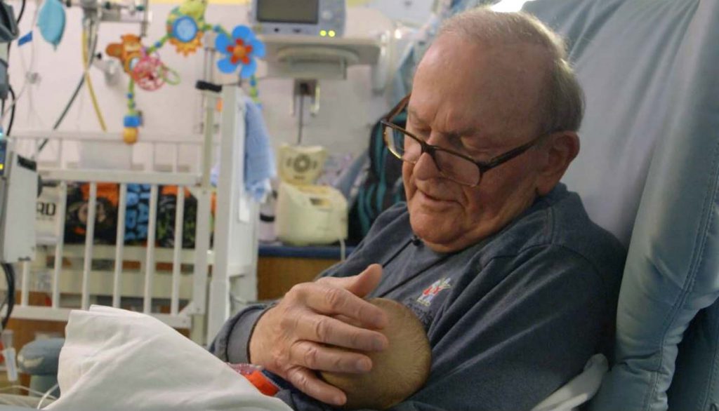 Vovô se voluntaria para segurar bebês na UTI quando os pais não podem