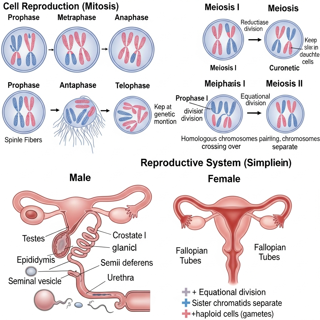 A reprodução é o processo pelo qual os seres vivos geram descendentes, garantindo a perpetuação das espécies. Pode ser assexuada (sem gametas) ou sexuada (com gametas), cada uma com vantagens evolutivas específicas.
