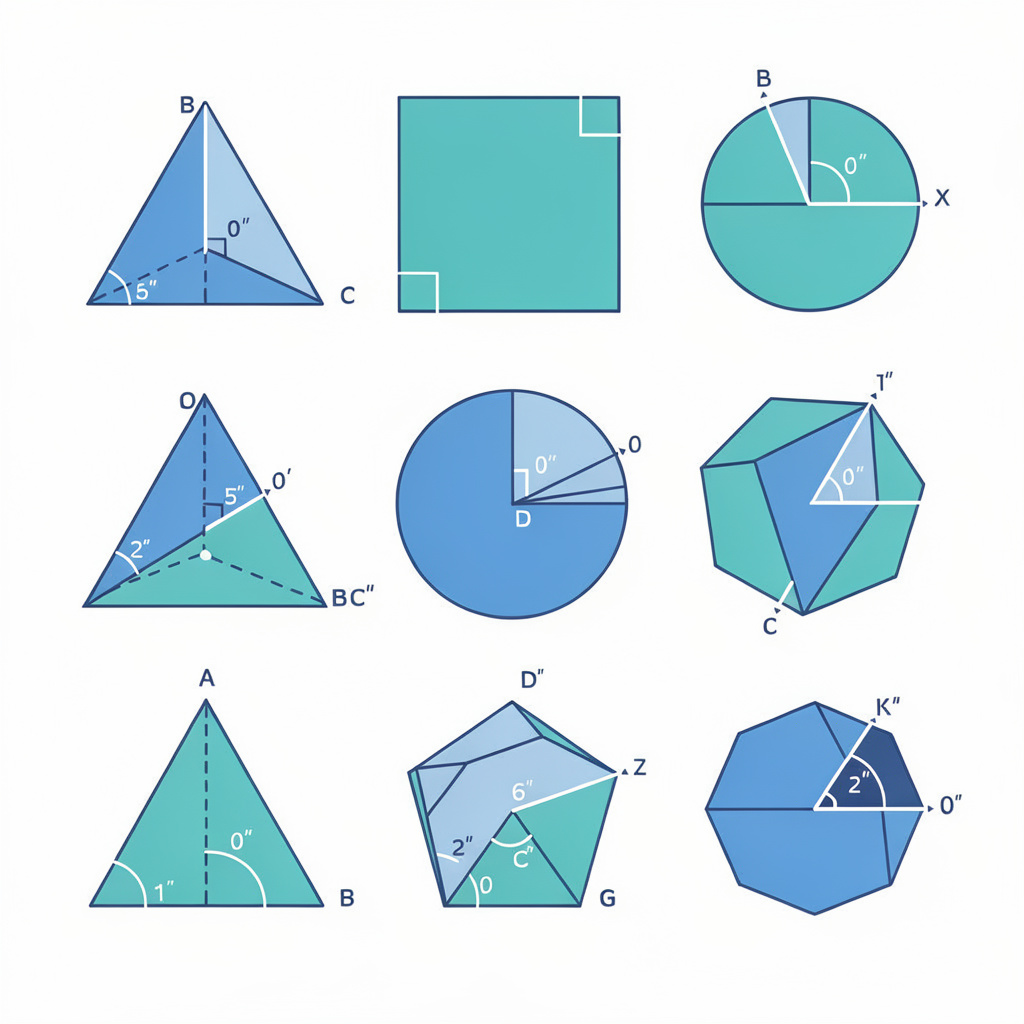 A Geometria Plana tem como objetos de estudo os pontos, retas e figuras bidimensionais. Os conceitos primitivos, como ponto, reta e plano, são aceitos sem definição formal e servem como base para a construção de todo o conhecimento geométrico. A partir desses elementos, desenvolvemos os conceitos de ângulos, polígonos e suas propriedades.
