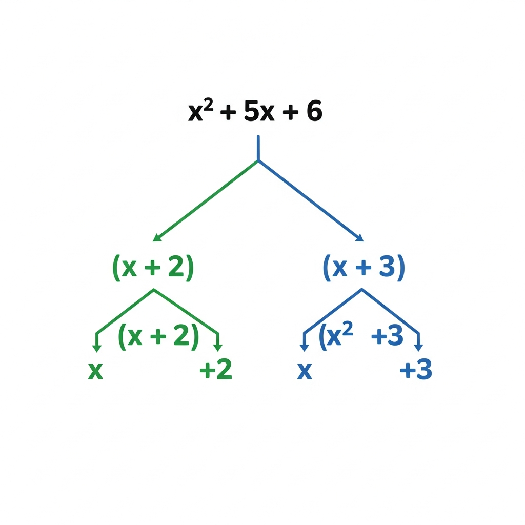 A fatoração é uma técnica algébrica fundamental que consiste em escrever uma expressão como produto de fatores mais simples. Dominar fatoração é essencial para simplificar expressões, resolver equações e trabalhar com frações algébricas.
